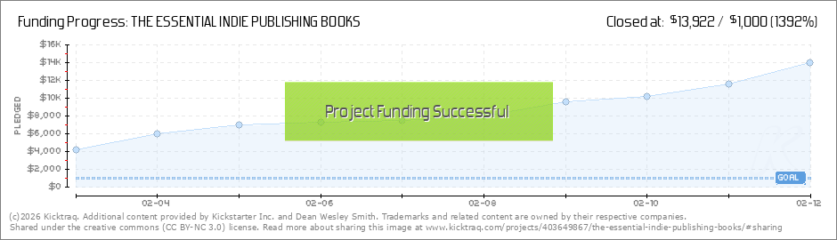 Thanks, Everyone!!!We hit the big sixth stretch goal where all backers of this campaign get a $1,500 writing class. Over 200 videos. Wow!!!So now all backers not only get the four ESSENTIAL INDIE PUBLISHING BOOKS in electronic, but also six writing... (Read More)