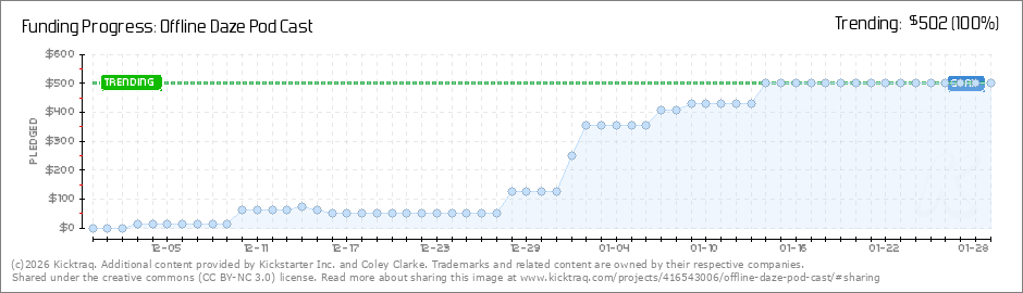 Help your backers reach your daily goals and help others see how you're doing. It's easy, with Kicktraq Mini.Here are a few quick snippits of code you can use to embed your personalized widget on your website, in your blog, and even on your favorite forum.