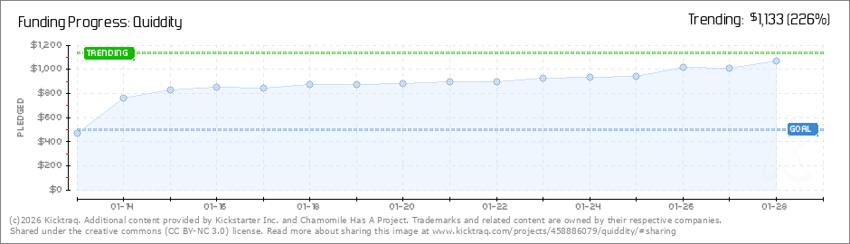 Help your backers reach your daily goals and help others see how you're doing. It's easy, with Kicktraq Mini.Here are a few quick snippits of code you can use to embed your personalized widget on your website, in your blog, and even on your favorite forum.