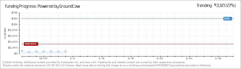 Help your backers reach your daily goals and help others see how you're doing. It's easy, with Kicktraq Mini.Here are a few quick snippits of code you can use to embed your personalized widget on your website, in your blog, and even on your favorite forum.
