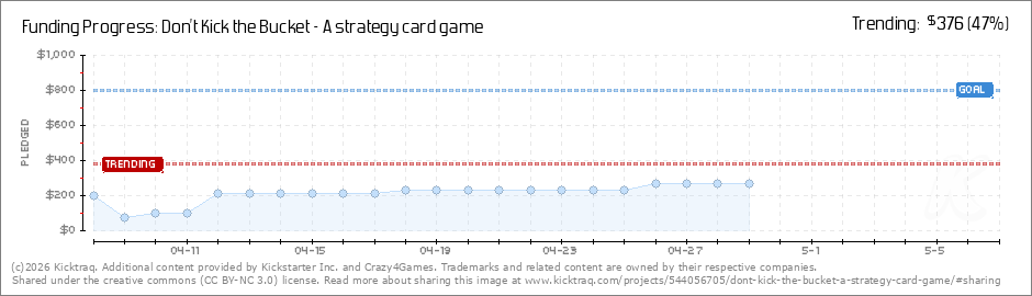 Help your backers reach your daily goals and help others see how you're doing. It's easy, with Kicktraq Mini.Here are a few quick snippits of code you can use to embed your personalized widget on your website, in your blog, and even on your favorite forum.