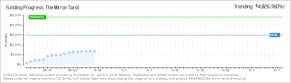 Help your backers reach your daily goals and help others see how you're doing. It's easy, with Kicktraq Mini.Here are a few quick snippits of code you can use to embed your personalized widget on your website, in your blog, and even on your favorite forum.