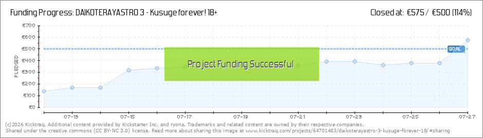 Help your backers reach your daily goals and help others see how you're doing. It's easy, with Kicktraq Mini.Here are a few quick snippits of code you can use to embed your personalized widget on your website, in your blog, and even on your favorite forum.