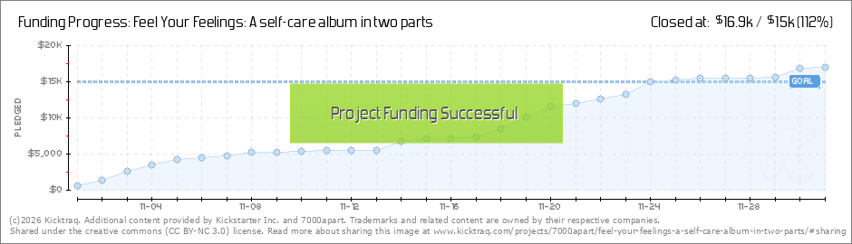 THANK YOU! We are a little over 47% funded & are so grateful that you are as excited as we are about “Feel Your Feelings”, but now is crunch time. We have under 2 weeks to make another $7,884 to be able to afford to make this album. Thanks... (Read More)