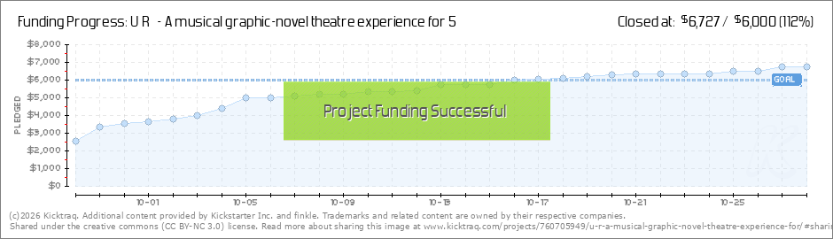 Help your backers reach your daily goals and help others see how you're doing. It's easy, with Kicktraq Mini.Here are a few quick snippits of code you can use to embed your personalized widget on your website, in your blog, and even on your favorite forum.