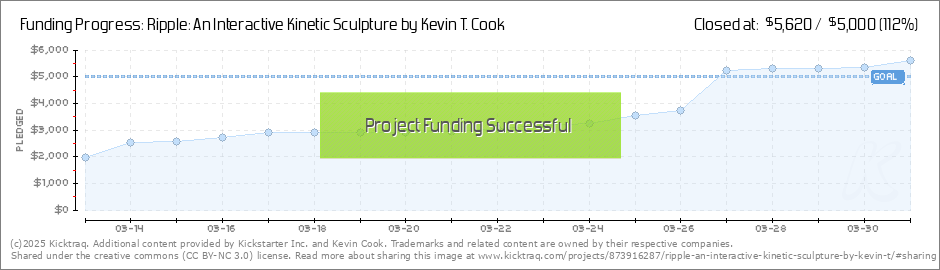 Wooohooo! With 4 days remaining, we have reached our goal and I cannot express in words how much everybody's support means to me. My senior thesis: Ripple is now fully funded! You guys get all of the funky sweet perks as promised! Everybody wins!... (Read More)