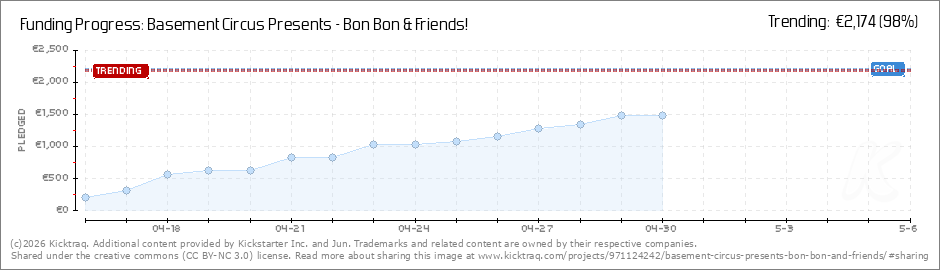 Help your backers reach your daily goals and help others see how you're doing. It's easy, with Kicktraq Mini.Here are a few quick snippits of code you can use to embed your personalized widget on your website, in your blog, and even on your favorite forum.