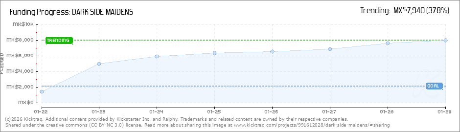 Help your backers reach your daily goals and help others see how you're doing. It's easy, with Kicktraq Mini.Here are a few quick snippits of code you can use to embed your personalized widget on your website, in your blog, and even on your favorite forum.