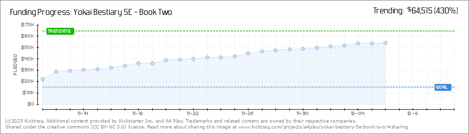 Help your backers reach your daily goals and help others see how you're doing. It's easy, with Kicktraq Mini.Here are a few quick snippits of code you can use to embed your personalized widget on your website, in your blog, and even on your favorite forum.