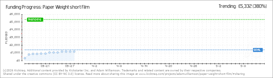 Help your backers reach your daily goals and help others see how you're doing. It's easy, with Kicktraq Mini.Here are a few quick snippits of code you can use to embed your personalized widget on your website, in your blog, and even on your favorite forum.