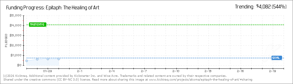 Help your backers reach your daily goals and help others see how you're doing. It's easy, with Kicktraq Mini.Here are a few quick snippits of code you can use to embed your personalized widget on your website, in your blog, and even on your favorite forum.