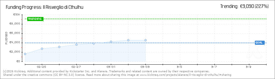Help your backers reach your daily goals and help others see how you're doing. It's easy, with Kicktraq Mini.Here are a few quick snippits of code you can use to embed your personalized widget on your website, in your blog, and even on your favorite forum.