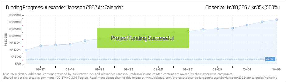Hi all amazing backers, we have some great news for you! The stretch goal has today been unlocked. That means that we will along with the calendars, prints and cards also be printing and then sending 1 of Alexanders new bookmark along with every... (Read More)