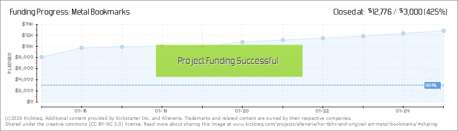 I want to thank everyone for the immense support on the project! We are now funded and have manage to unlocked few other designs from the stretch goals as well!! I have also added new tier of 4 metal bookmarks and 7 metal bookmarks to accommodate... (Read More)
