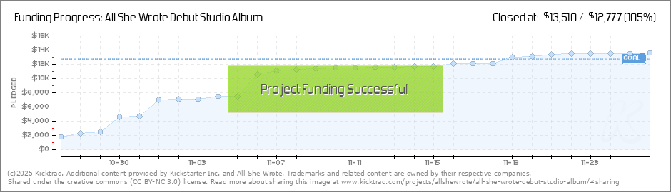 Wow!! We're 52% funded 6 DAYS IN! We are beyond grateful to each of you for your pledge, and for backing this campaign so early on. We are feeling very hopeful and excited about reaching our goal and getting this album into production. So much love... (Read More)