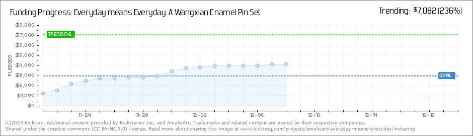 Thank you all so much! We are fully funded now, so that likely means the project will be going ahead and we can all get our Wangxian pins! This is just a quick update to let you know that I've got all the pin files ready to go, and we are just going... (Read More)