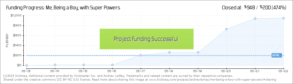 Thank you everyone for all of you help! As this will be my last post before flying to shoot Anna's film: "Me, Being a Boy, with Super Powers", I thought it best to put it all on the table to see if we can get over the $1000 mark! So, if you're a fan... (Read More)