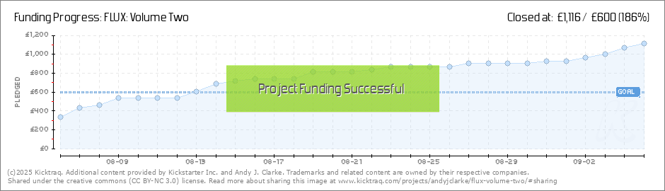 I was delighted to wake up this morning to see the Kickstarter had hit it's goal, FLUX: Volume Two is 100% funded! Amazing!! Thank you to everyone who has pledged, supported and spread the word! As promised, stretch goals are incoming and will be... (Read More)