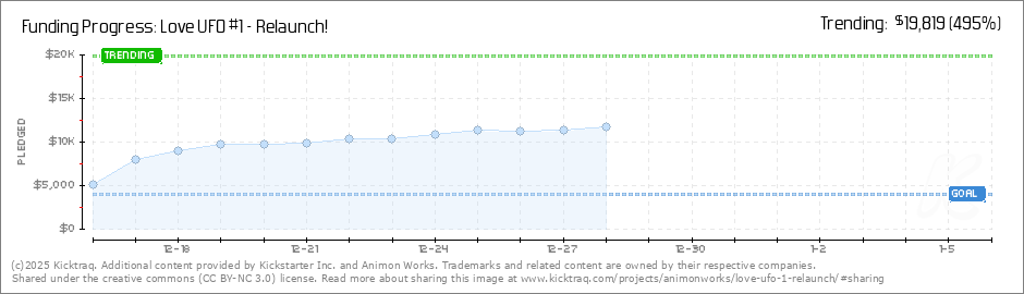 Help your backers reach your daily goals and help others see how you're doing. It's easy, with Kicktraq Mini.Here are a few quick snippits of code you can use to embed your personalized widget on your website, in your blog, and even on your favorite forum.