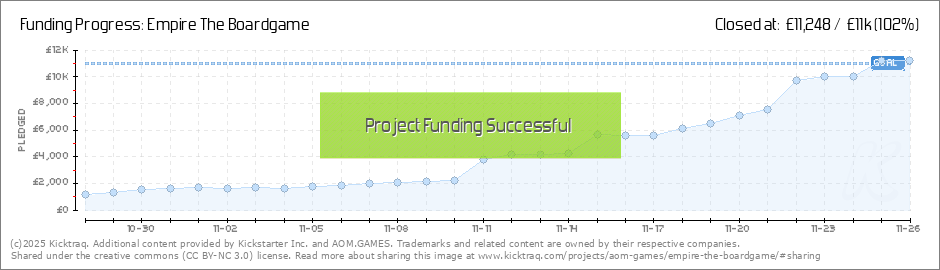 Thank you for following Empire The Boardgame! We are busy working away behind the scenes to bring you this brilliant game and are really excited for launch day 28th October! We will be in touch with further updates...stay tuned! (Read More)
