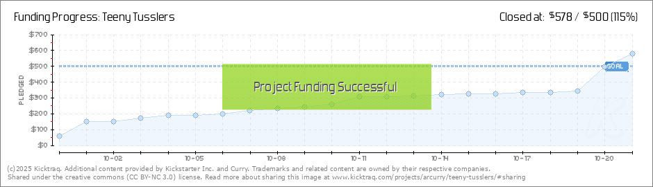 Help your backers reach your daily goals and help others see how you're doing. It's easy, with Kicktraq Mini.Here are a few quick snippits of code you can use to embed your personalized widget on your website, in your blog, and even on your favorite forum.