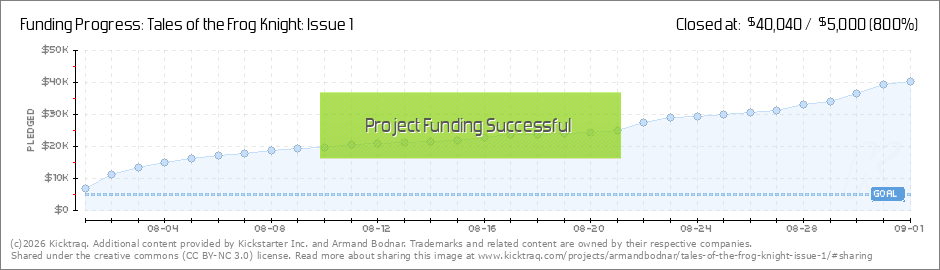 Wow! It's only been nine days since we launched the crowdfunding campaign for Tales of the Frog Knight: Issue 1, and as we write this we've reached nearly 400% of our original goal! We continue to be honored and humbled by the response to our... (Read More)