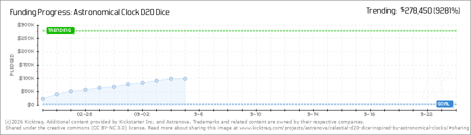 Help your backers reach your daily goals and help others see how you're doing. It's easy, with Kicktraq Mini.Here are a few quick snippits of code you can use to embed your personalized widget on your website, in your blog, and even on your favorite forum.