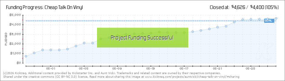 Help your backers reach your daily goals and help others see how you're doing. It's easy, with Kicktraq Mini.Here are a few quick snippits of code you can use to embed your personalized widget on your website, in your blog, and even on your favorite forum.