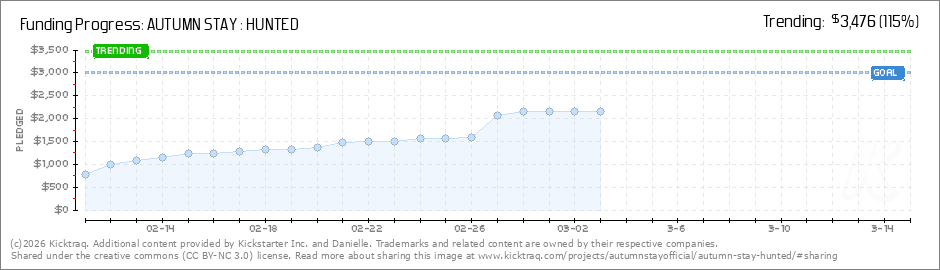 Help your backers reach your daily goals and help others see how you're doing. It's easy, with Kicktraq Mini.Here are a few quick snippits of code you can use to embed your personalized widget on your website, in your blog, and even on your favorite forum.