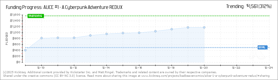 Help your backers reach your daily goals and help others see how you're doing. It's easy, with Kicktraq Mini.Here are a few quick snippits of code you can use to embed your personalized widget on your website, in your blog, and even on your favorite forum.