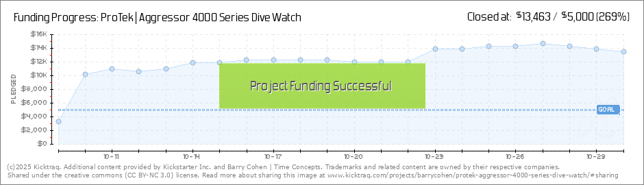 Just a few hours in and we are well on our way! We look forward to sharing this bold new dive watch with you. Please note there is a typo in the $325 level reward item description. This campaign is for the new Aggressor 4000 dive series, not a field... (Read More)