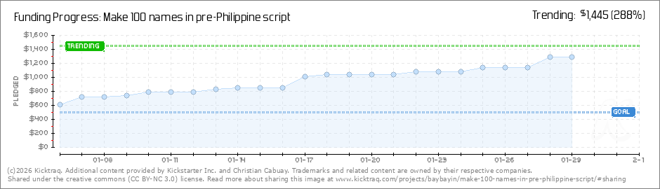 Help your backers reach your daily goals and help others see how you're doing. It's easy, with Kicktraq Mini.Here are a few quick snippits of code you can use to embed your personalized widget on your website, in your blog, and even on your favorite forum.