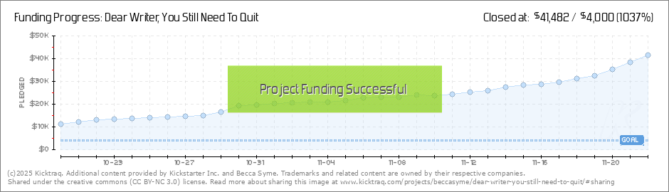 Help your backers reach your daily goals and help others see how you're doing. It's easy, with Kicktraq Mini.Here are a few quick snippits of code you can use to embed your personalized widget on your website, in your blog, and even on your favorite forum.