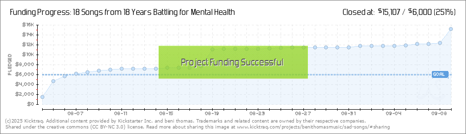 Today we hit two more big milestones: 100 individual backers and over $7,000 raised! To celebrate I'm going to posts some more music this week. Keep an eye on my Facebook page for any videos I post! https://www.facebook.com/benithomasmusic (Read More)