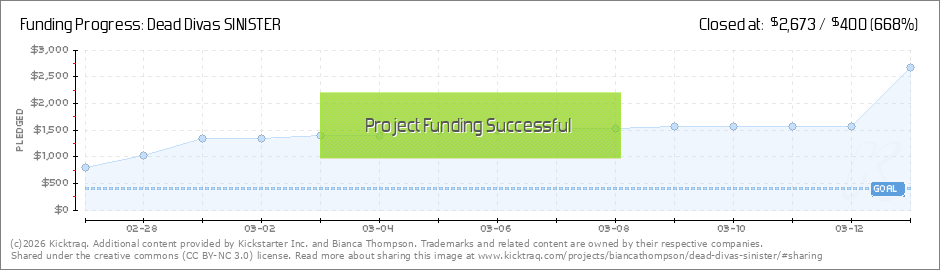 Dead Divas Kickstarter is off to an awesome start! 100% fully funded within the first 30 min and 4 stretch goals have already been unlocked! Thank you so much for your pledge it is greatly appreciated! With 10 days left we're currently only $100 away... (Read More)