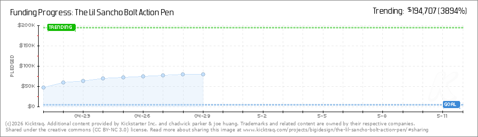 Help your backers reach your daily goals and help others see how you're doing. It's easy, with Kicktraq Mini.Here are a few quick snippits of code you can use to embed your personalized widget on your website, in your blog, and even on your favorite forum.