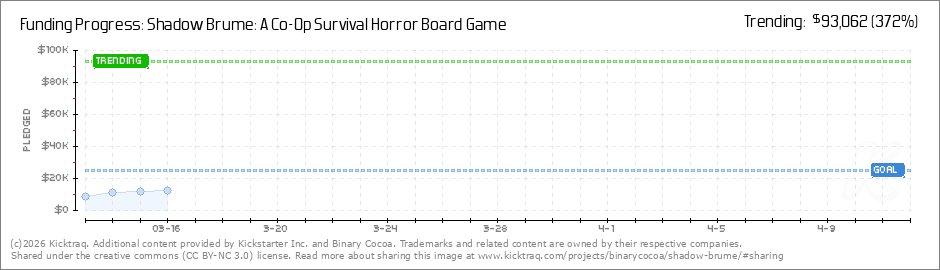 Help your backers reach your daily goals and help others see how you're doing. It's easy, with Kicktraq Mini.Here are a few quick snippits of code you can use to embed your personalized widget on your website, in your blog, and even on your favorite forum.