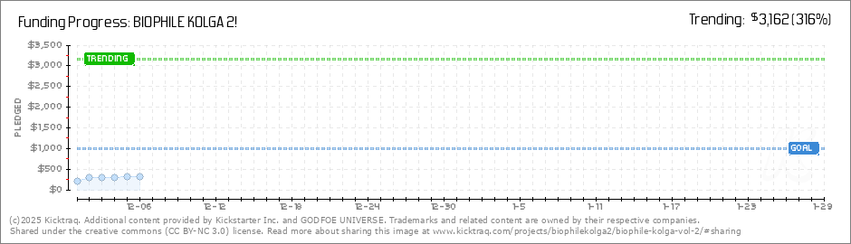 Help your backers reach your daily goals and help others see how you're doing. It's easy, with Kicktraq Mini.Here are a few quick snippits of code you can use to embed your personalized widget on your website, in your blog, and even on your favorite forum.