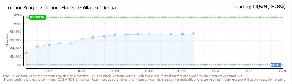 Help your backers reach your daily goals and help others see how you're doing. It's easy, with Kicktraq Mini.Here are a few quick snippits of code you can use to embed your personalized widget on your website, in your blog, and even on your favorite forum.