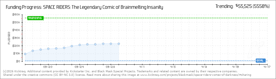 Help your backers reach your daily goals and help others see how you're doing. It's easy, with Kicktraq Mini.Here are a few quick snippits of code you can use to embed your personalized widget on your website, in your blog, and even on your favorite forum.