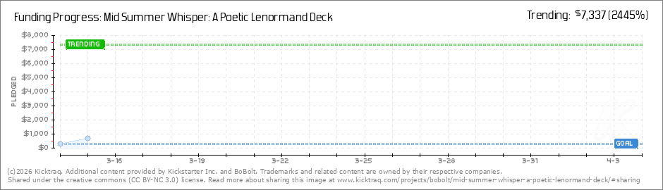 Help your backers reach your daily goals and help others see how you're doing. It's easy, with Kicktraq Mini.Here are a few quick snippits of code you can use to embed your personalized widget on your website, in your blog, and even on your favorite forum.