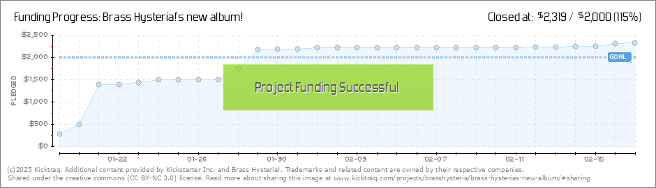 Help your backers reach your daily goals and help others see how you're doing. It's easy, with Kicktraq Mini.Here are a few quick snippits of code you can use to embed your personalized widget on your website, in your blog, and even on your favorite forum.