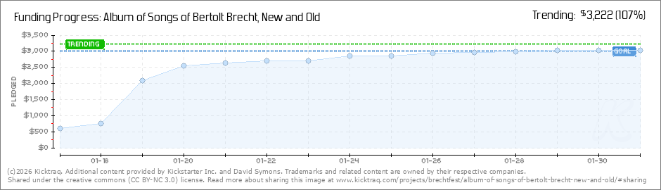 Help your backers reach your daily goals and help others see how you're doing. It's easy, with Kicktraq Mini.Here are a few quick snippits of code you can use to embed your personalized widget on your website, in your blog, and even on your favorite forum.