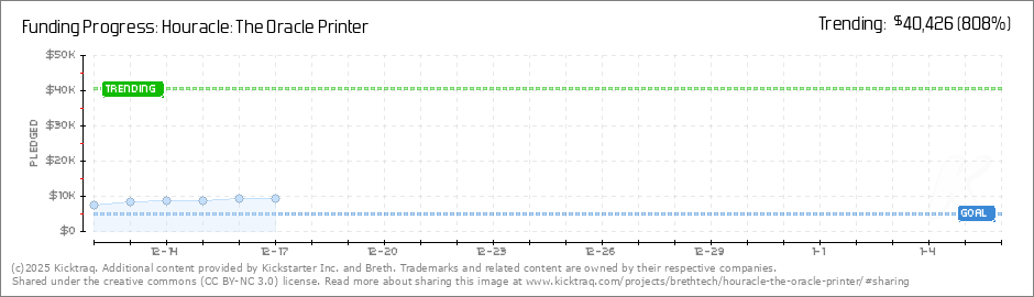 Help your backers reach your daily goals and help others see how you're doing. It's easy, with Kicktraq Mini.Here are a few quick snippits of code you can use to embed your personalized widget on your website, in your blog, and even on your favorite forum.