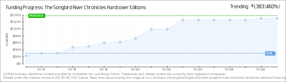Help your backers reach your daily goals and help others see how you're doing. It's easy, with Kicktraq Mini.Here are a few quick snippits of code you can use to embed your personalized widget on your website, in your blog, and even on your favorite forum.