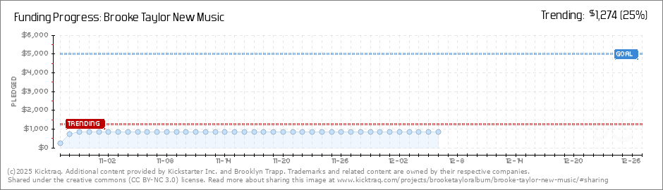 Help your backers reach your daily goals and help others see how you're doing. It's easy, with Kicktraq Mini.Here are a few quick snippits of code you can use to embed your personalized widget on your website, in your blog, and even on your favorite forum.