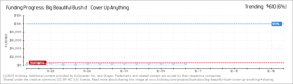 Help your backers reach your daily goals and help others see how you're doing. It's easy, with Kicktraq Mini.Here are a few quick snippits of code you can use to embed your personalized widget on your website, in your blog, and even on your favorite forum.