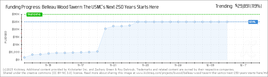 Belleau Wood Tavern has officially PASSED our $25,000 Kickstarter goal and we did it in just 14 DAYS! To our 46 incredible backers… you are the heartbeat of this mission. You had the faith, trust, and confidence in what Roy and I are building, and... (Read More)