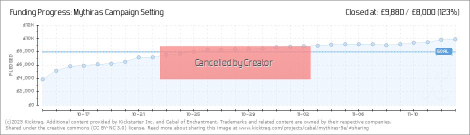 Hello everyone, I'm here today to announce the cancellation of Mythiras Campaign Setting. Even though the project has reached the funding goal in the re-launch, there are still many risk factors regarding the funding and potential delivery. Combined... (Read More)