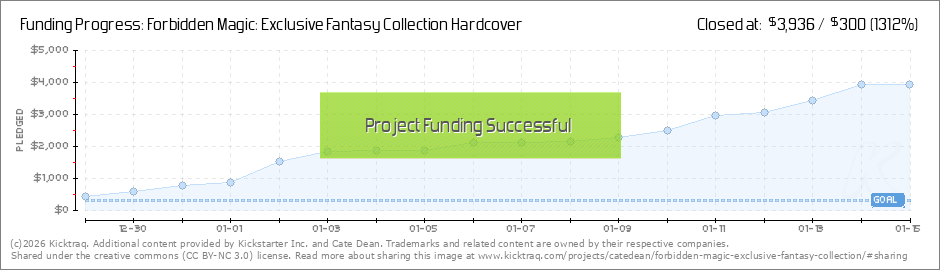 Now that the campaign is funded, the fun begins. The first stretch goal unlocks at $500 ~ all backer names in the book. We're almost there. :) A few limited edition bookmarks are still available, so feel free to share the campaign. Thank you again! ... (Read More)